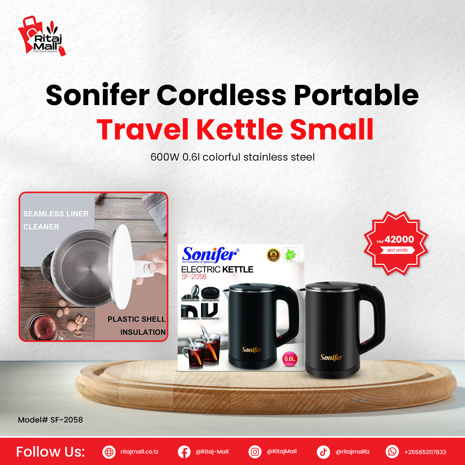 Sonifer 0.6L Travel Electric Kettle (SF-2058)