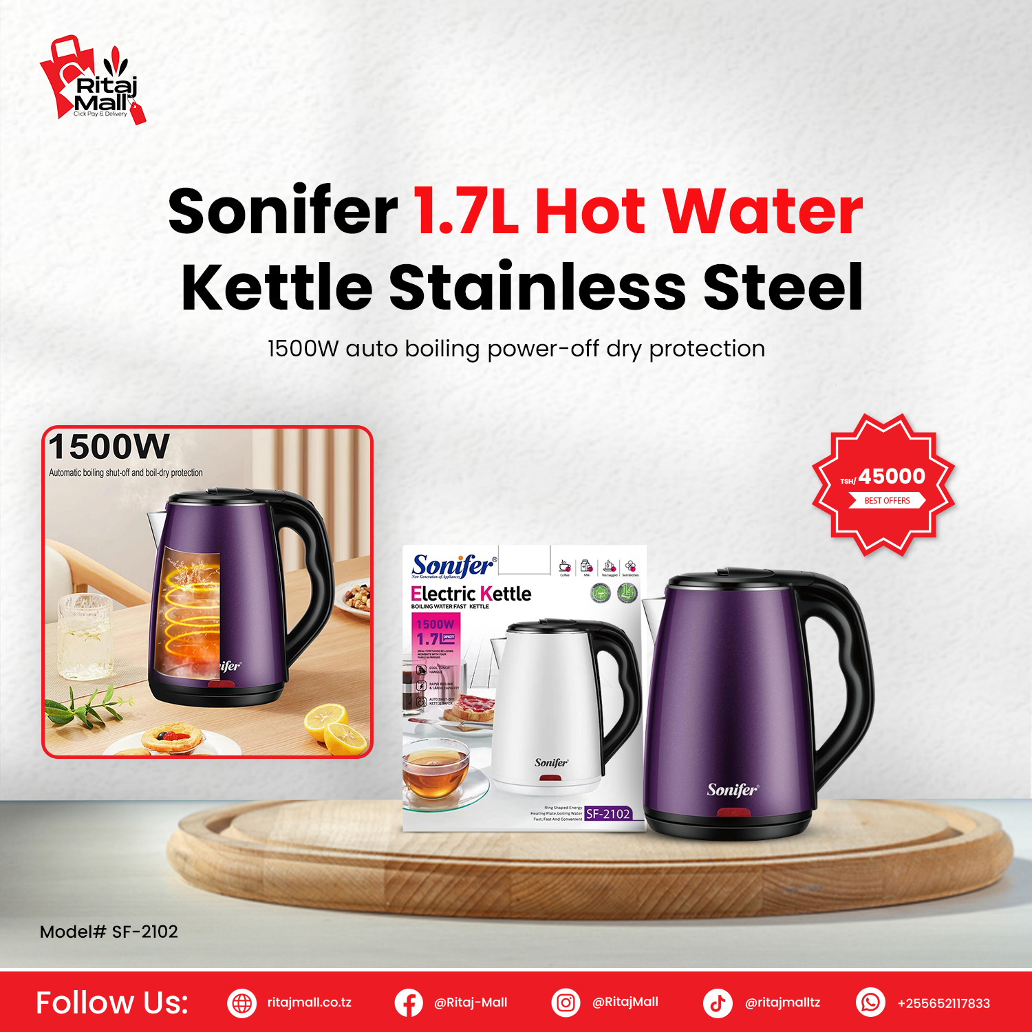 Sonifer 1.7L Hot Water Electric Kettle (SF-2102)