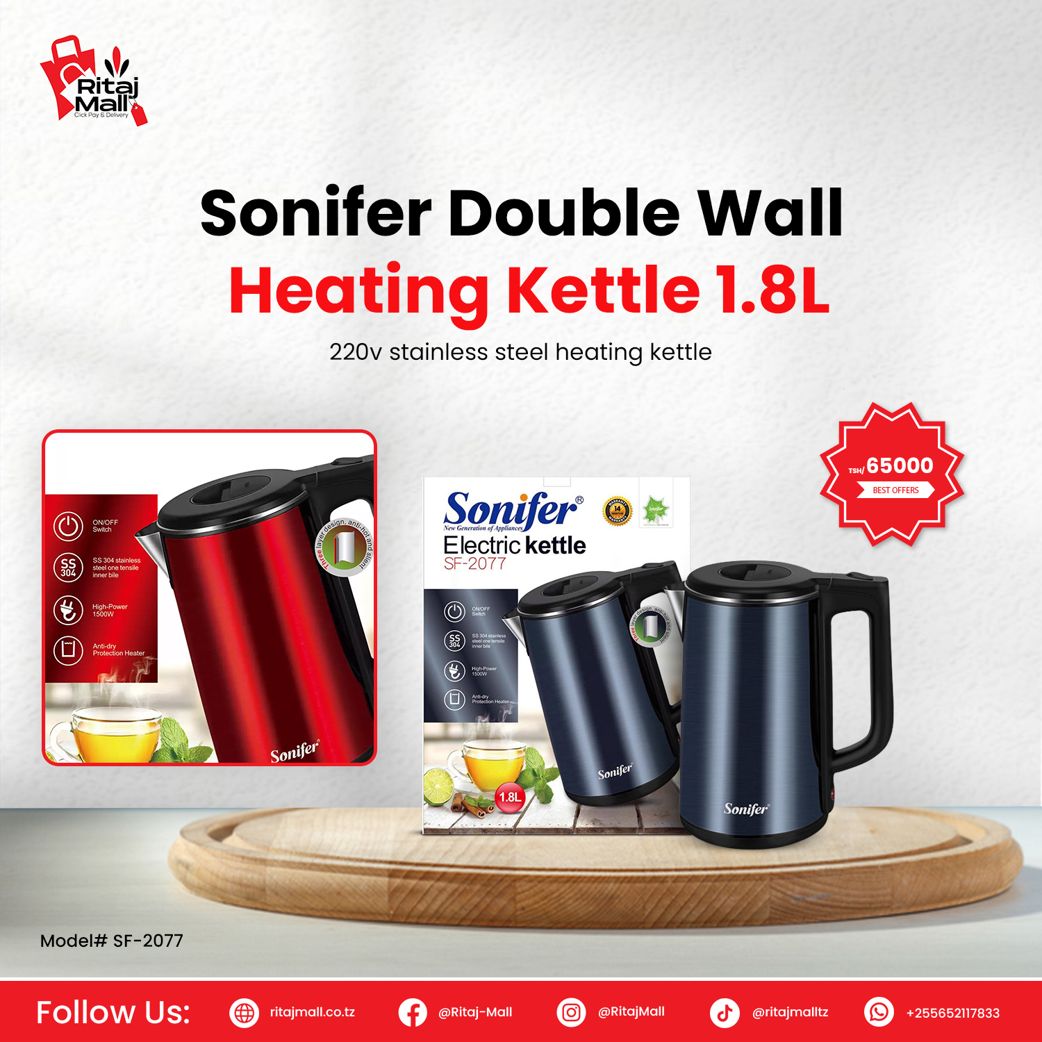 Sonifer 1.8L Electric Kettle (SF-2077)