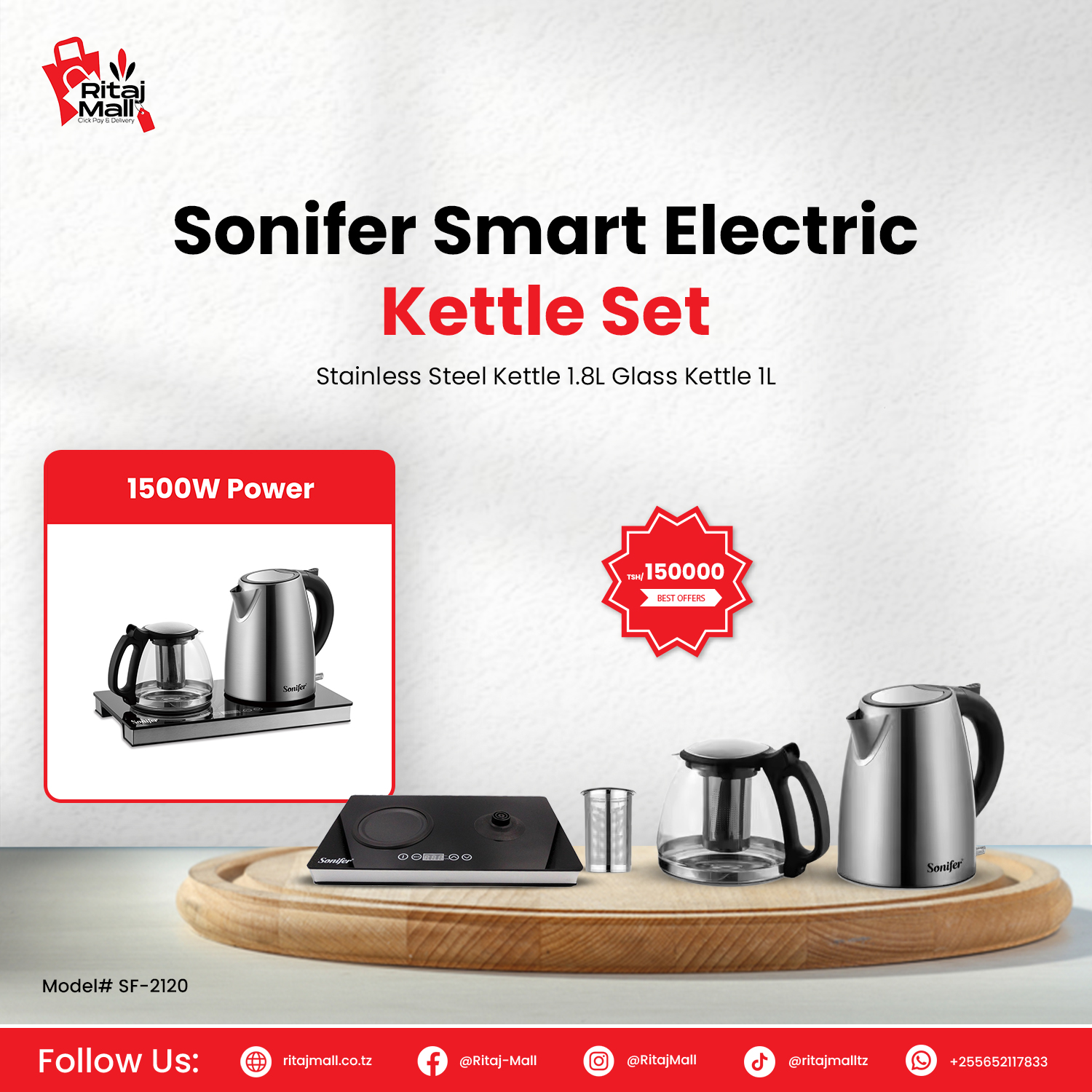 Sonifer 1.8L+1.0L Small Electric Kettle (SF-2120)