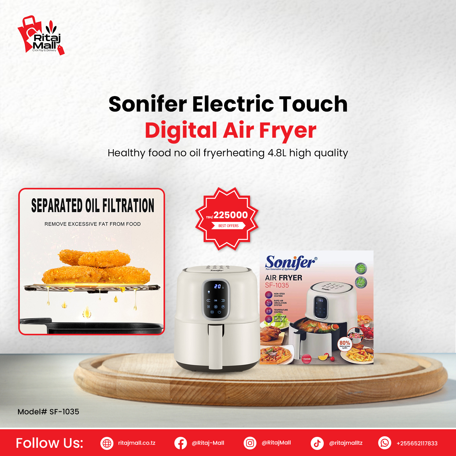 Sonifer 4.8L Electric Touch Digital Air Fryer (SF-1035)