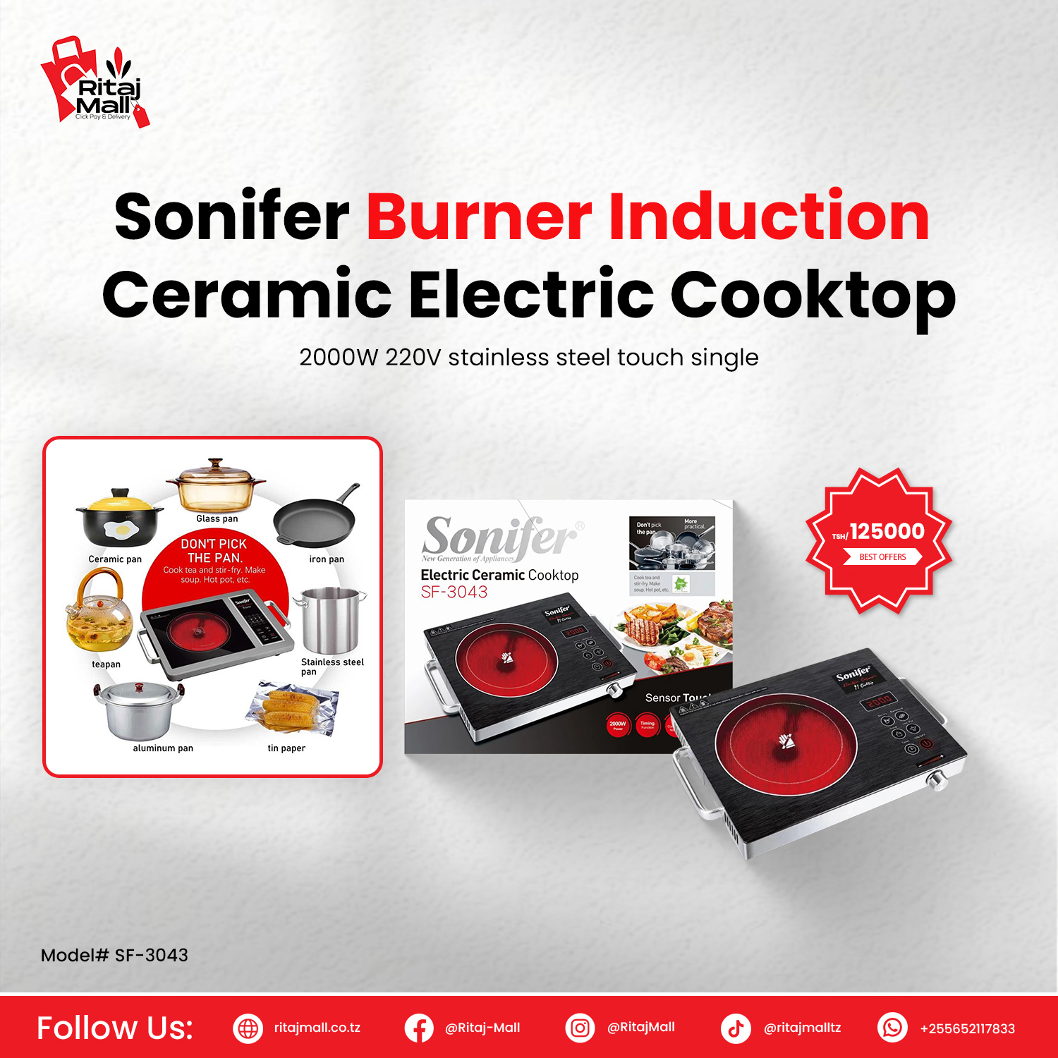 Sonifer Burner Induction Ceramic Electric Cooktop (SF-3043)