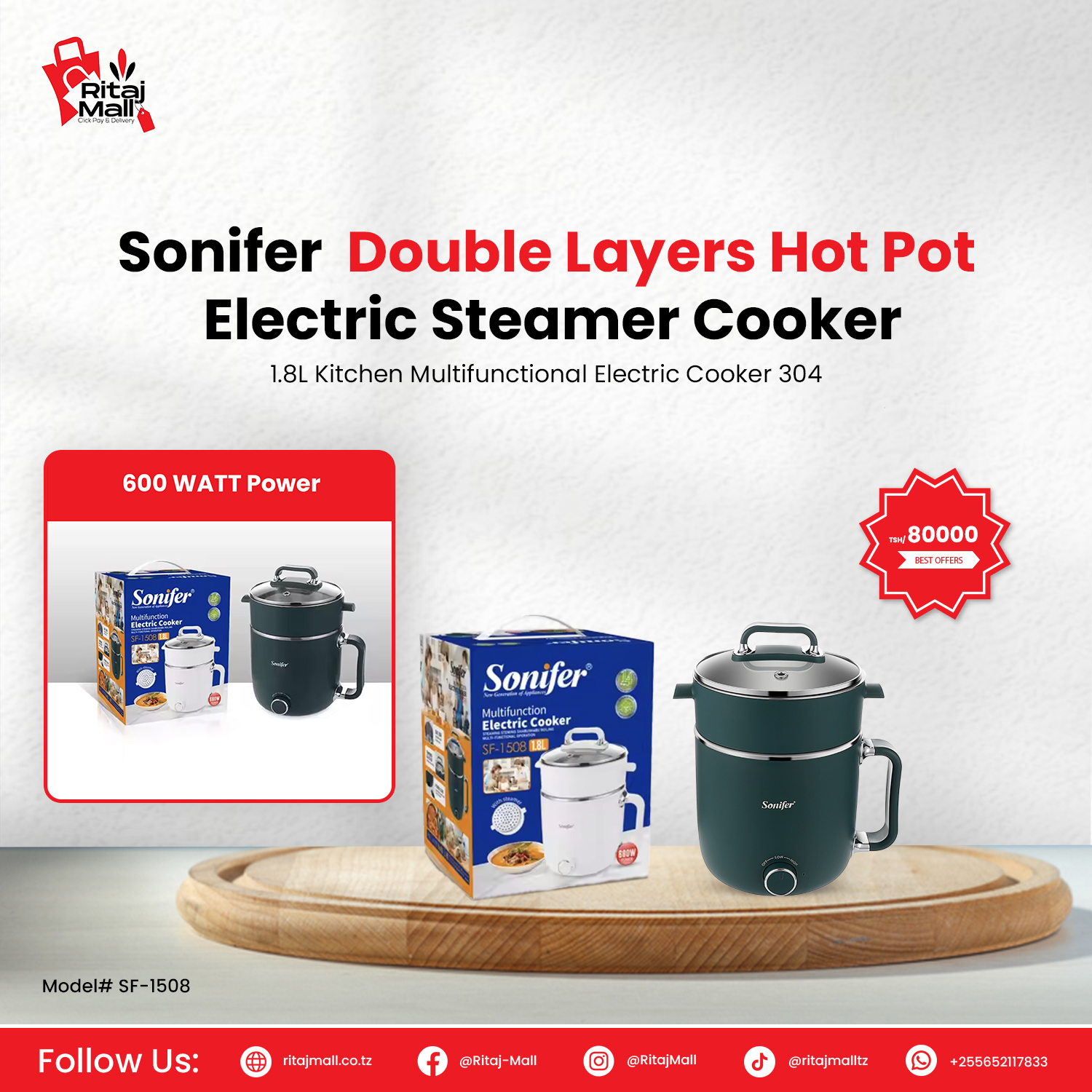 Sonifer Double Layers Hot Pot Electric Stream Cooker (SF-1508)
