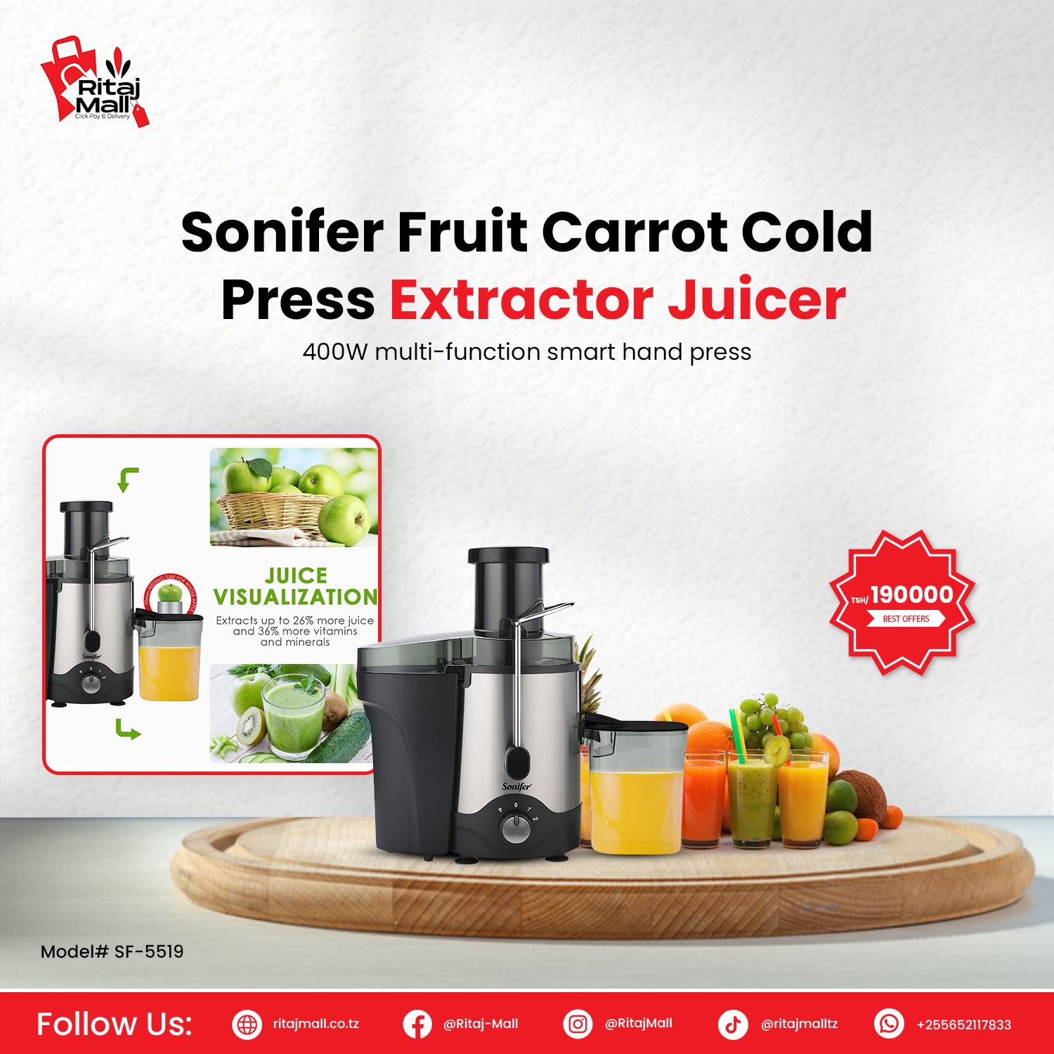 Sonifer Fruit Carrot Cold Press Extractor Juicer (SF-5519)