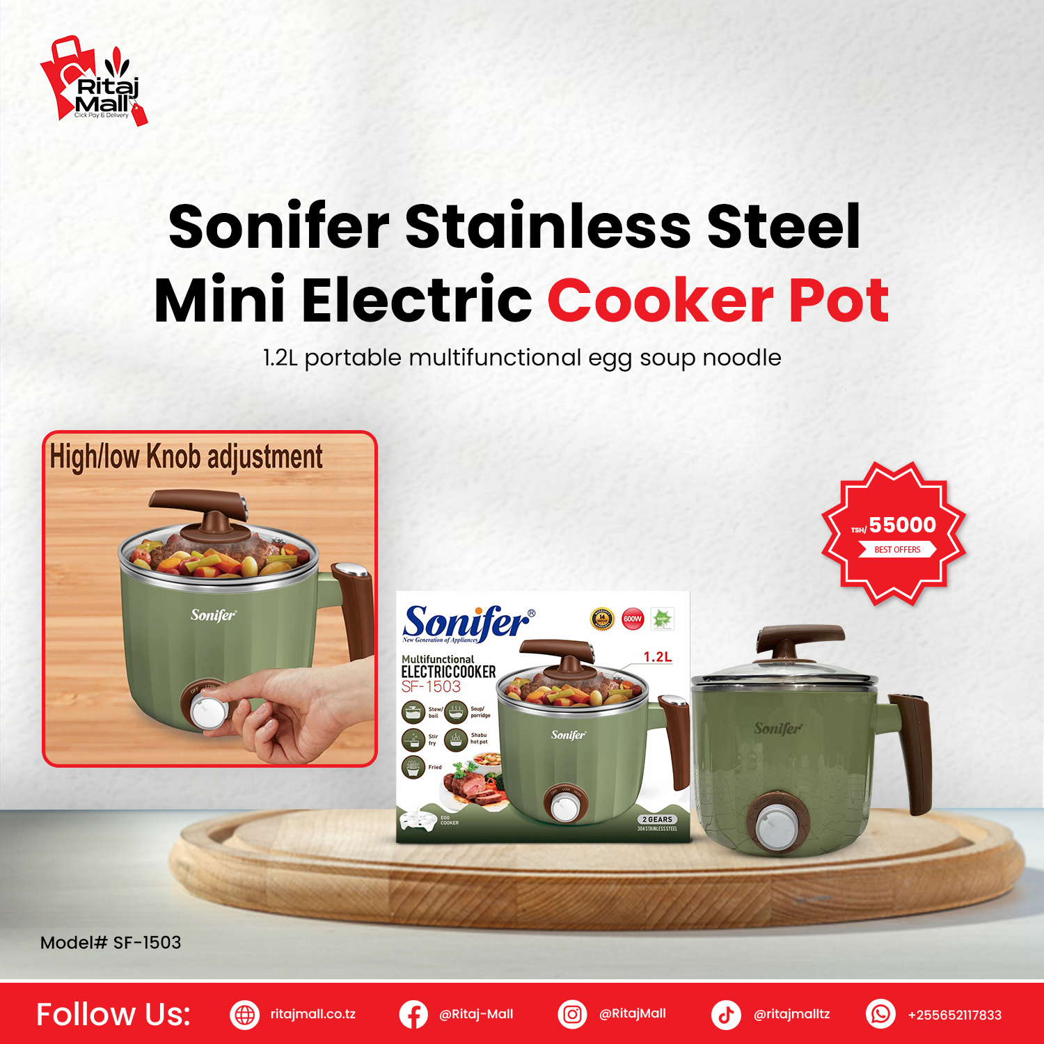 Sonifer 1.2L Stainless Steel Electric Cooker Pot (SF-1503)